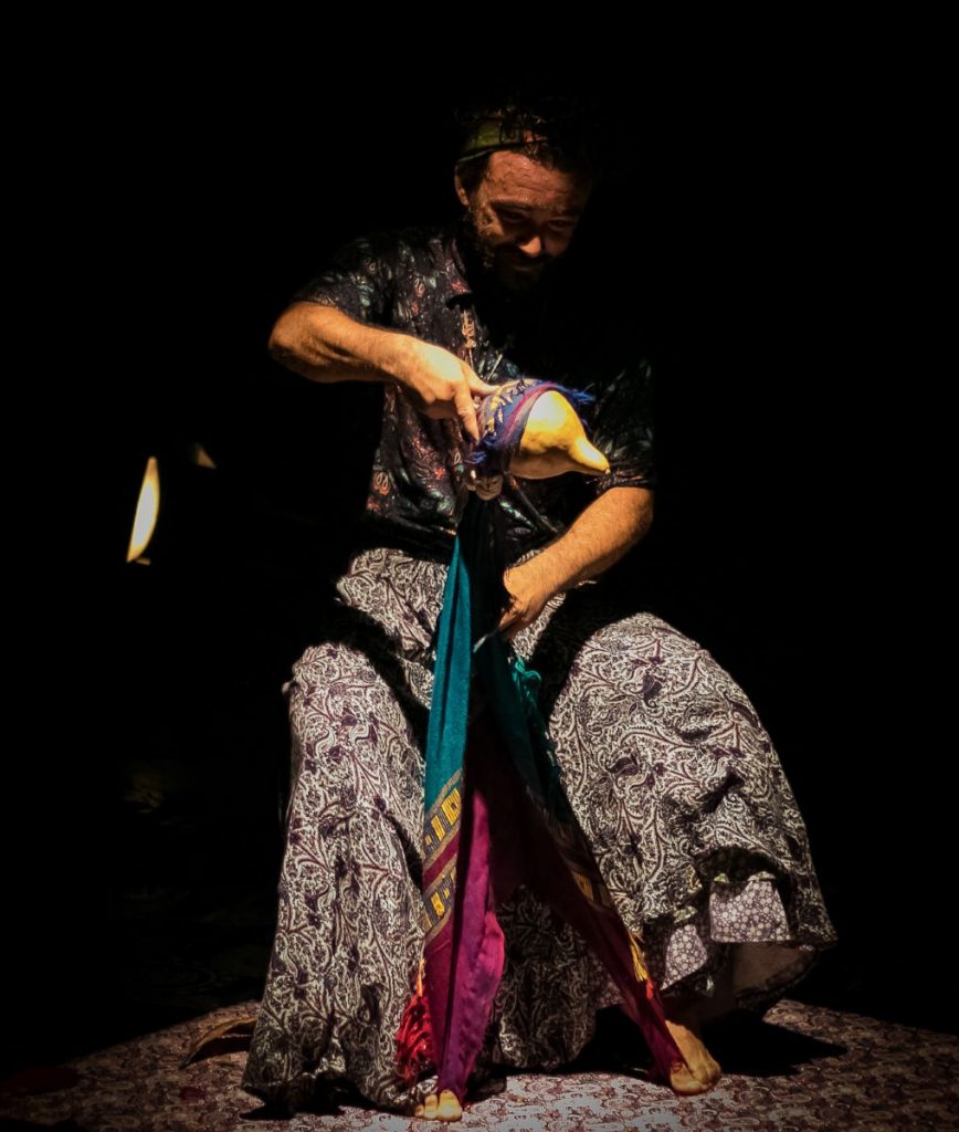 Em um dos espetáculos, o artista estreia Encantarias, seu mais novo trabalho voltado para o público infantil emparceria com a arte-educadora, Juliana Roza, que mescla teatro, narração e música ao vivo | Foto: Nayra