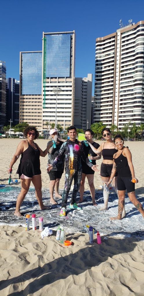 Uma imensa tela de 9×3 metros foi estendida na Praia de Porto das Dunas, no local exato onde acontece o encontro do rio Pacoti com o mar. Um momento de sinergia entre as diferentes linguagens e poéticas manifestadas pelos diferentes artistas presentes resultou em uma obra potente e viva.