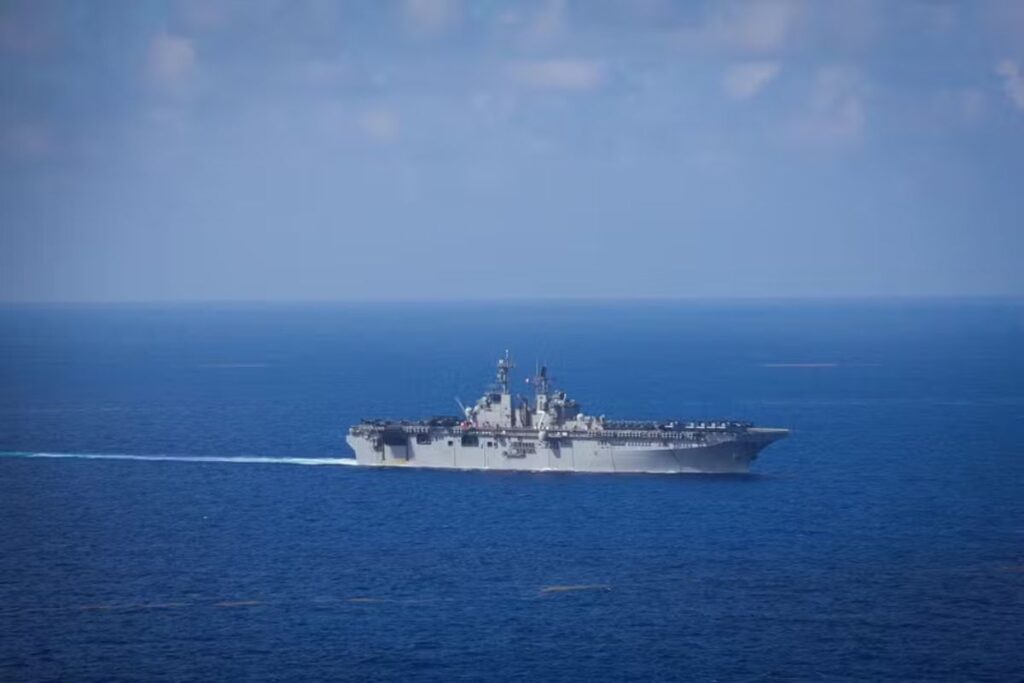 O USS Iwo Jima é um navio de assalto anfíbio da classe Wasp, equipado para operações aéreas, desembarque de tropas e projeção de poder militar, contando com helicópteros, aeronaves e fuzileiros navais a bordo.