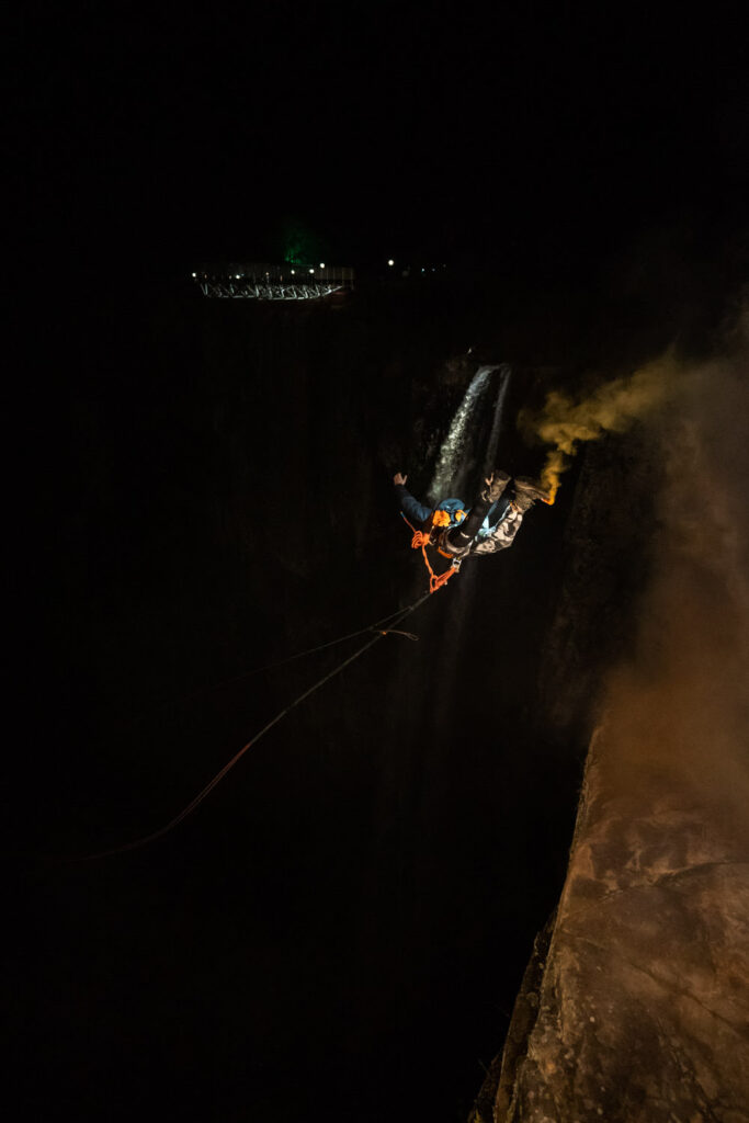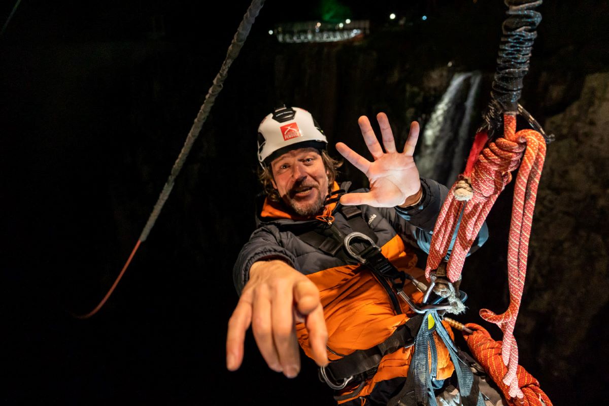 João Rodolfo Ferreira dos Santos após fazer o Salto de Pêndulo Noturno | Foto: Natural Extremo/divulgação