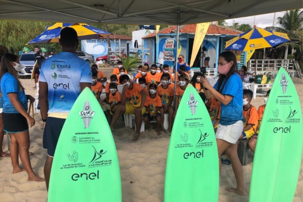 “Comunidades afetadas pela violência, mas que possuem acesso próximo à praia, oferecem um ambiente propício para afastar crianças e jovens da criminalidade, ao mesmo tempo que abrem portas para o surgimento de novos talentos no surf. A escolha dessa modalidade para o projeto se deve à escassez de oportunidades de acesso ao esporte nessas regiões, e isso só se tornou viável graças ao patrocínio da ENEL, através da Lei de Incentivo ao Esporte do Estado do Ceará”, destaca Caroline Teles, profissional de Educação Física e coordenadora do programa.