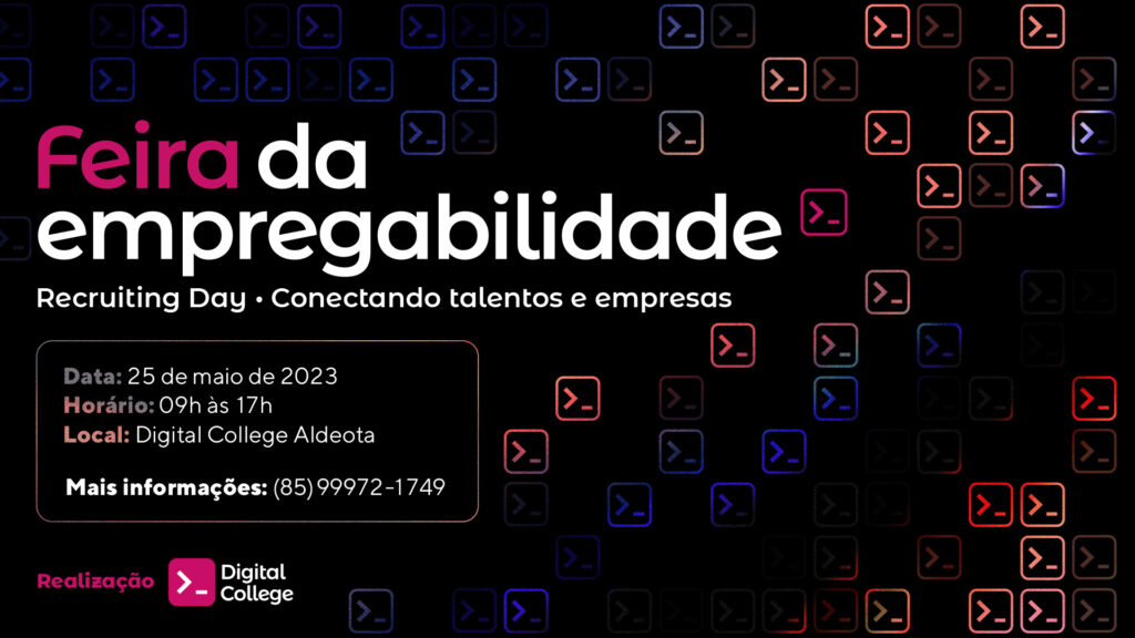 A Digital College, primeira escola de habilidades digitais do Ceará, vai realizar a Feira da Empregabilidade. O objetivo é conectar empresas com mais de mil profissionais capacitados pela escola e, assim, promover inclusão no mercado de trabalho e auxiliar as companhias no contexto atual, nacional e mundial, de dificuldade de conseguir empregados para cargos de tecnologia devido à falta de pessoal qualificado.