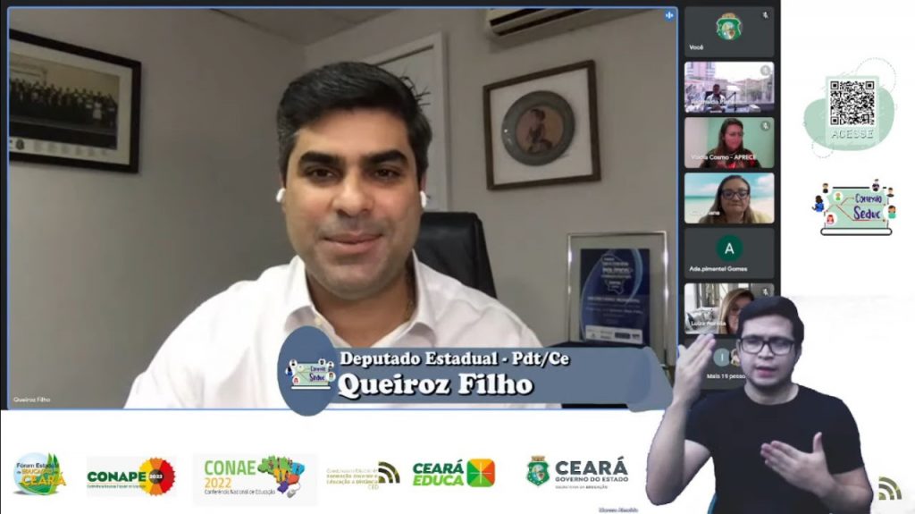 Presidente da Comissão de Educação da Assembleia Legislativa do Ceará, deputado estadual Queiroz Filho (PDT), defendeu a discussão democrática sobre a situação dos avanços e retrocessos na área do ensino, no Brasil, durante a abertura da “Conferência de Educação do Ceará – Rumo a Conape e a Conae – 2022”, etapa municipal/regional e/ou interregional. O evento foi realizado de forma online, na manhã desta quarta-feira (20/10).