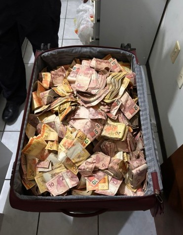 Grande quantidade de dinheiro em espécie encontrada em mala | Foto: divulgação