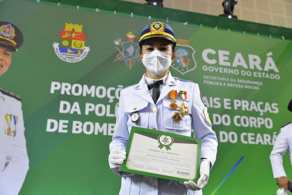 Uma dessas profissionais é a bombeira militar Mariana Ramalho, de Fortaleza, que foi promovida a terceiro-sargento. Na solenidade de promoção, Mariana foi agraciada com o certificado de honra ao mérito, que reconhece os serviços prestados à população cearense. “Eu me sinto com o coração muito feliz. Dá motivação para seguir em frente e buscar sempre se dedicar e crescer na corporação. Eu estou tentando representar o trabalho de cada um que é imenso, é luta diariamente”, contou.