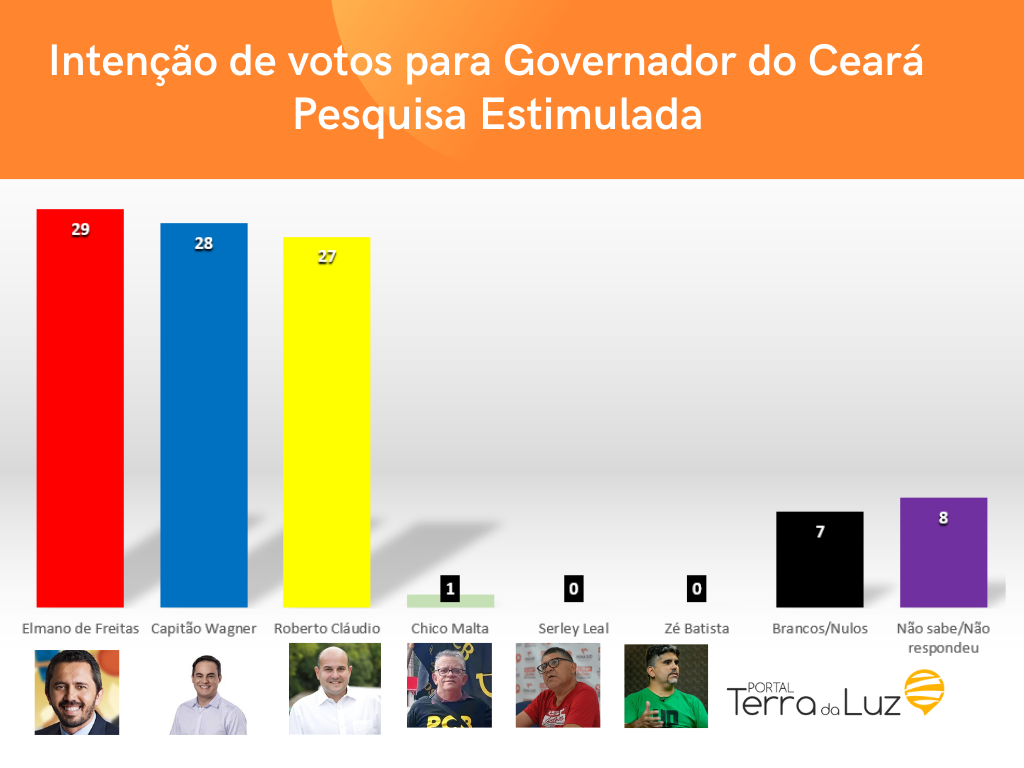 Sucessão Estadual: Portal Terra da Luz publica a primeira pesquisa de intenção de votos dos eleitores para o Governo do Ceará
