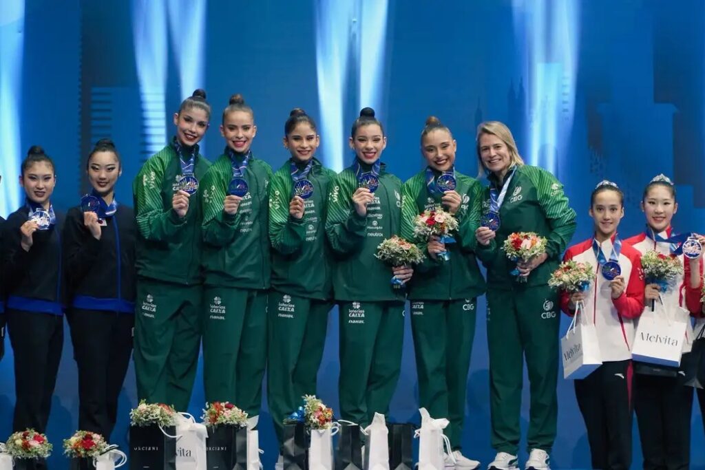20 de julho de 2025 — Pela primeira vez na história, o Brasil conquistou a medalha de ouro no conjunto geral da Copa do Mundo de Ginástica Rítmica, em Milão, na Itália. A vitória histórica foi